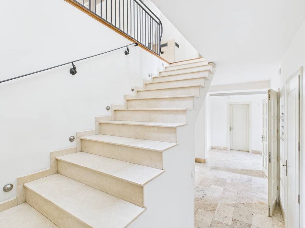 2 upper-floor apartments – with bathroom with shower, kitchenette, and built-in wardrobes for domestic staff. The second apartment serves as a „guest room” with small kitchenette and bathroom with shower, or as a teenager’s apartment. Ground floor: 2 garages accommodating 3 vehicles, utility room. Adjacent granite-paved driveway for approximately 10-12 cars.