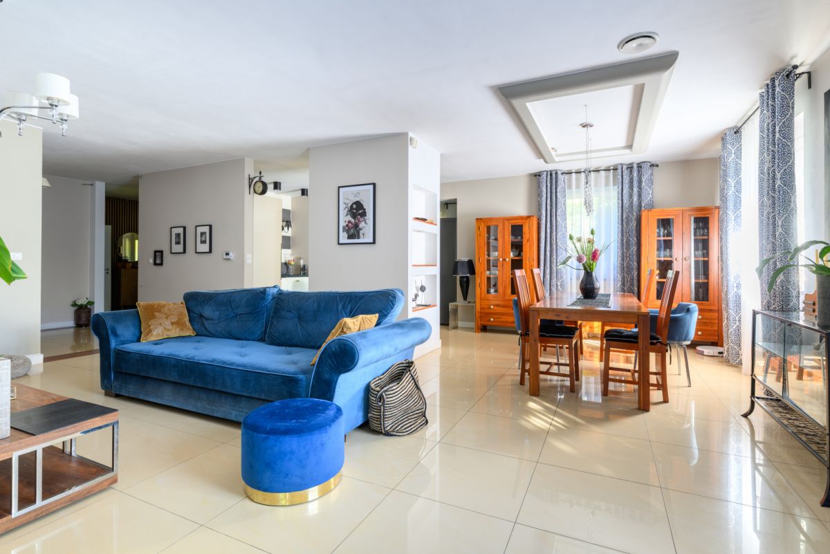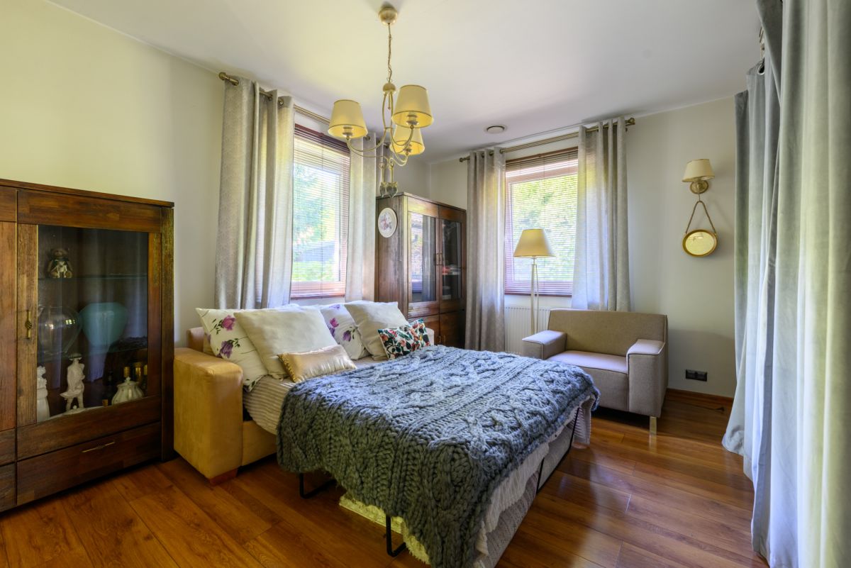 Funkcjonalny układ, przemyślana aranżacja pomieszczeń i zadbany ogród czynią go idealną propozycją dla rodzin szukających przestrzeni i spokoju w otoczeniu zieleni.