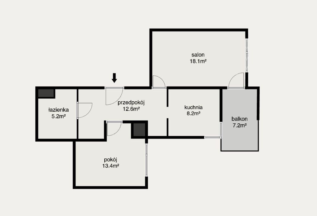 Nieruchomość o powierzchni 57,5 m² składa się z następujących pomieszczeń: