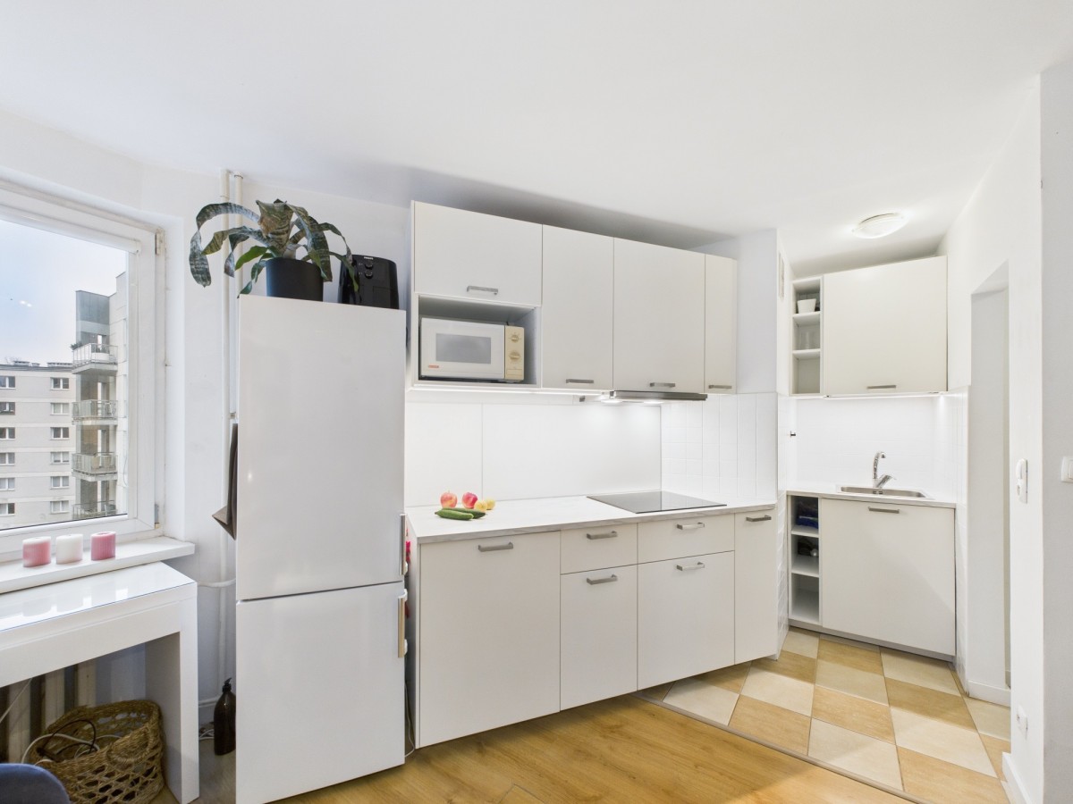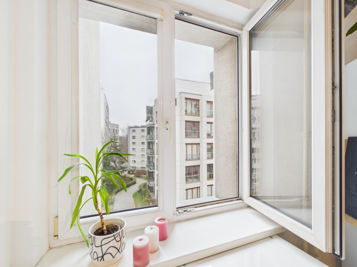 Pomimo małej powierzchni mieszkanie ma dużą szafą, rozkładany narożniki i miejscem do pracy przy oknie.