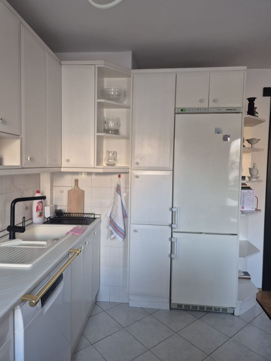 Z wyposażenia pozostają meble kuchenne, lodówka, kuchenka z piekarnikiem, zmywarka, pralka. W cenie mieszkania wszystkie meble i zabudowa.