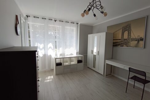 • Sypialnia – wygodne łóżko dwuosobowe oraz pojemna szafa wnękowa