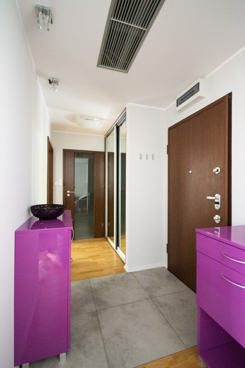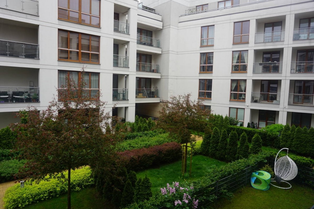 Do wynajęcia eleganckie, 2-pokojowe mieszkanie w apartamentowcu na warszawskim Wilanowie. Lokal znajduje się na parterze i posiada prywatny ogródek. Apartament o powierzchni 58,5 m² jest w pełni umeblowany oraz wyposażony w sprzęt AGD i RTV, a także klimatyzację. Wysokość pomieszczeń (290 cm) zapewnia poczucie przestrzeni i komfortu.
