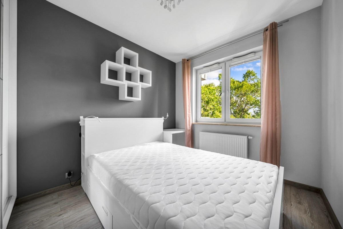 W lokalu znajduje się garderoba oraz wiele szaf i miejsc do przechowywania rzeczy. Mieszkanie jest słoneczne, a okna skierowane są na dwie strony świata – południe i zachód. Z balkonu rozpościera się piękny widok na zieleń, co sprzyja relaksowi po ciężkim dniu pracy.