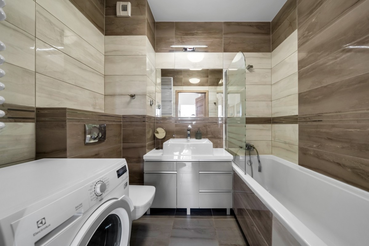 – łazienka z wanną (funkcja prysznica) i pralką;