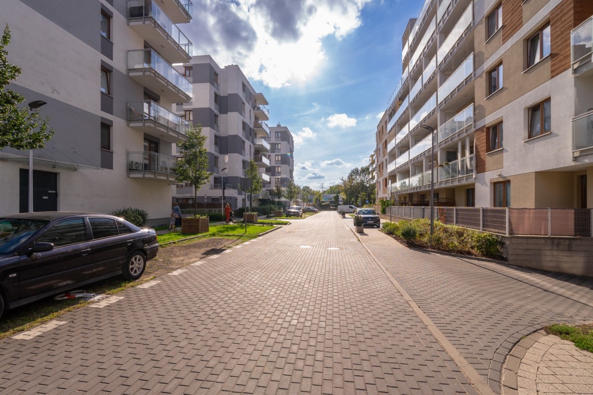 Na terenie osiedla znajduje się plac zabaw dla dzieci oraz fontanna z miejscem do wypoczynku, a w budynku obok jest siłownia tylko dla mieszkańców! W najbliższej okolicy liczne kawiarnie, restauracje, apteka, Biedronka, Żabka, przedszkola, żłobki.