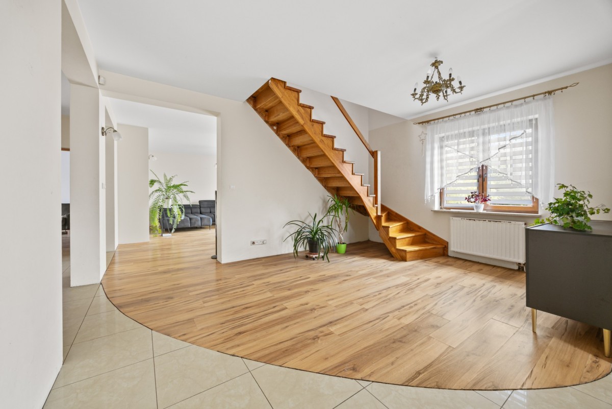 Dom 5-pokojowy o powierzchni 155 m2, z ogródkiem w Łajskach k. Legionowa na działce o powierzchni 1 100 m2. Nieruchomość łącząca elegancję z komfortem życia w cichej i spokojnej okolicy zaledwie 35 minut od Warszawy. Funkcjonalny układ pomieszczeń, garaż, ogród oraz bliskość szkół, sklepów i komunikacji sprawiają, że to miejsce doskonałe do zamieszkania.