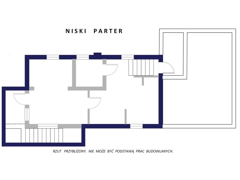 - Wysoki parter, 3 m wysokości, niski parter, 2,5 m.