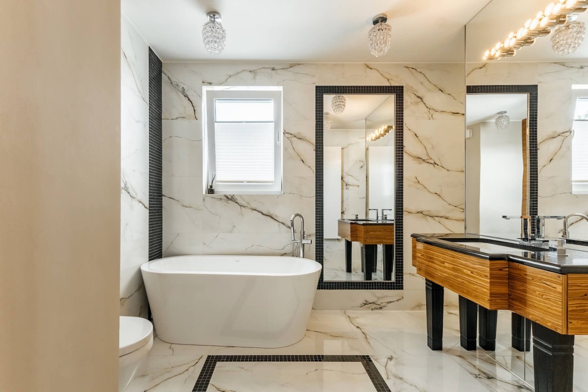 – sypialnię typu master z łazienką z wanną i prysznicem, garderobą i dodatkową toaletką;