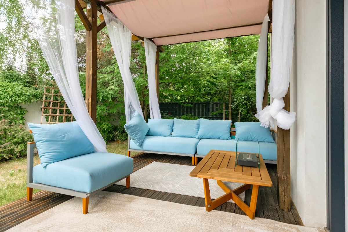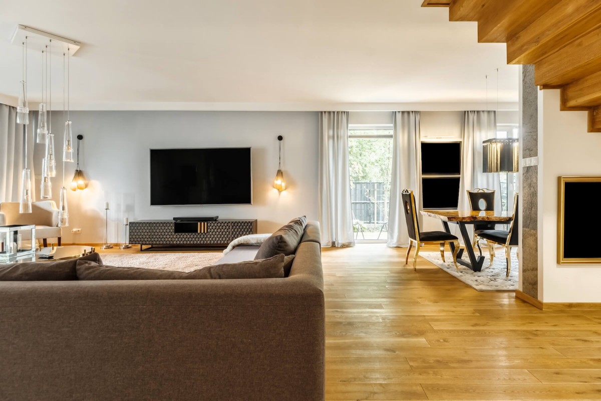 – Stylowa aranżacja – połączenie drewna i kamienia