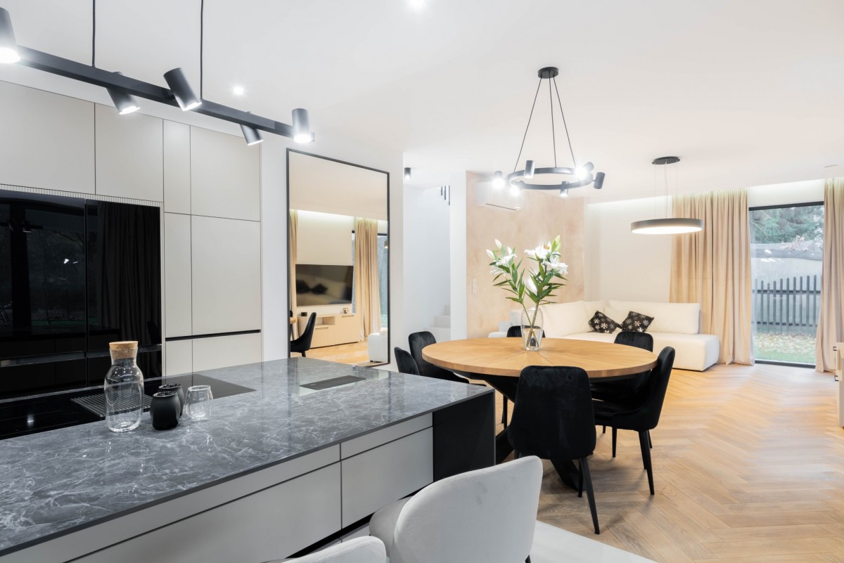 Smart home: oświetlenie, dostęp do domu, czujniki bezpieczeństwa, klimatyzacja, AGD/RTV oraz system nawodnienia – wszystko sterowane z aplikacji.