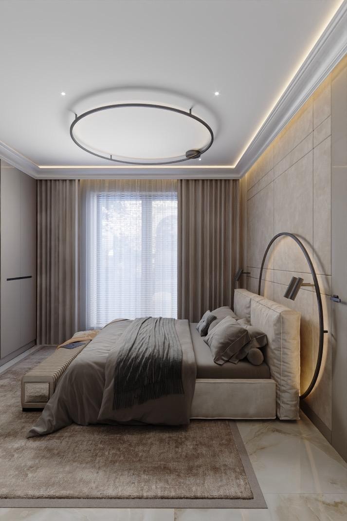 Sypialnia master została zaprojektowana jako przestrzeń luksusowego wypoczynku z dużą komfortową garderobą i prywatną łazienką z wanną oraz prysznicem. Druga sypialnia również posiada garderobę i łazienkę, co zapewnia pełną prywatność domownikom.