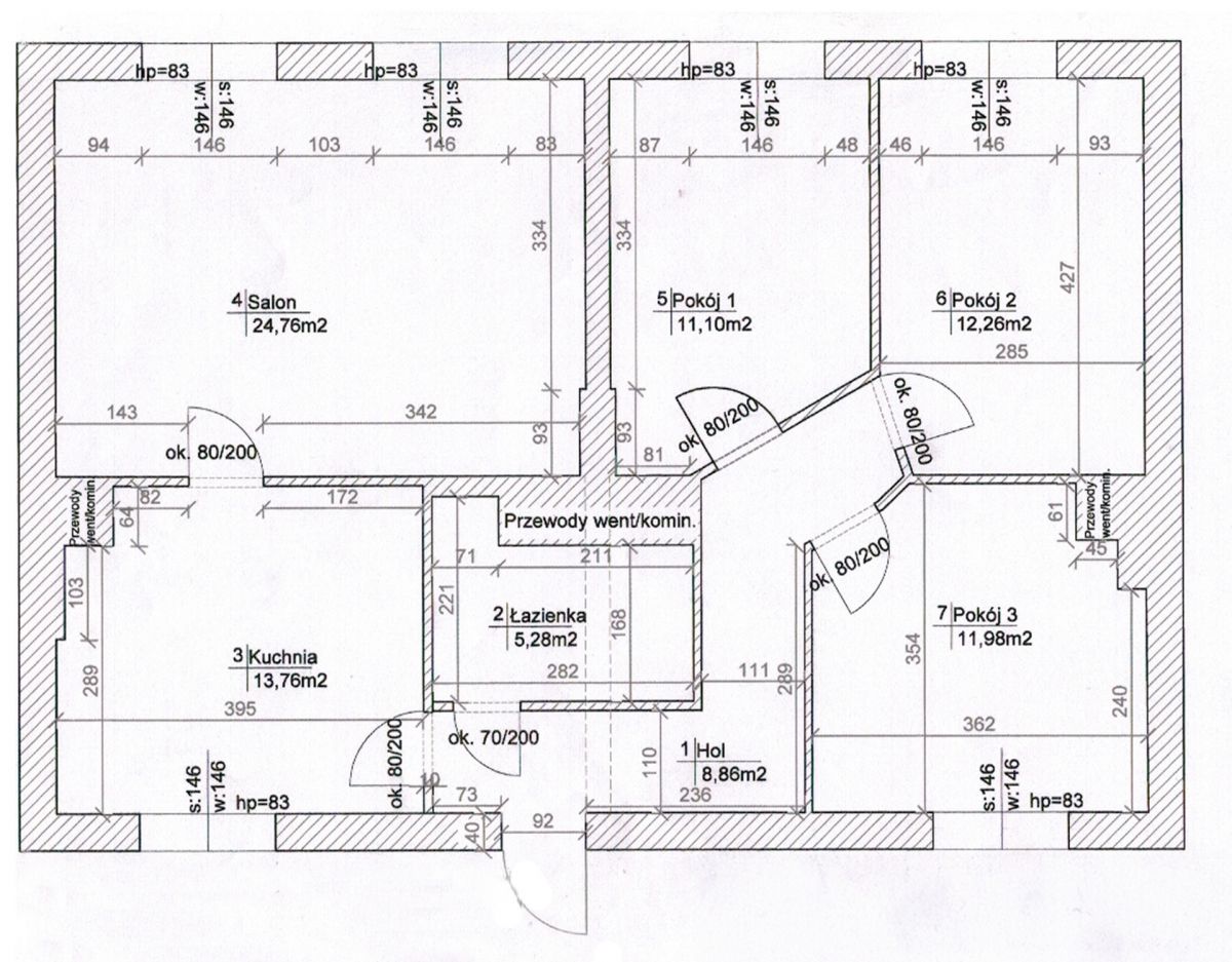 Mieszkanie powstało z połączenia 2 mieszkań i stanowi obecnie 4 pokojowe mieszkanie z widną kuchnią i łazienką.