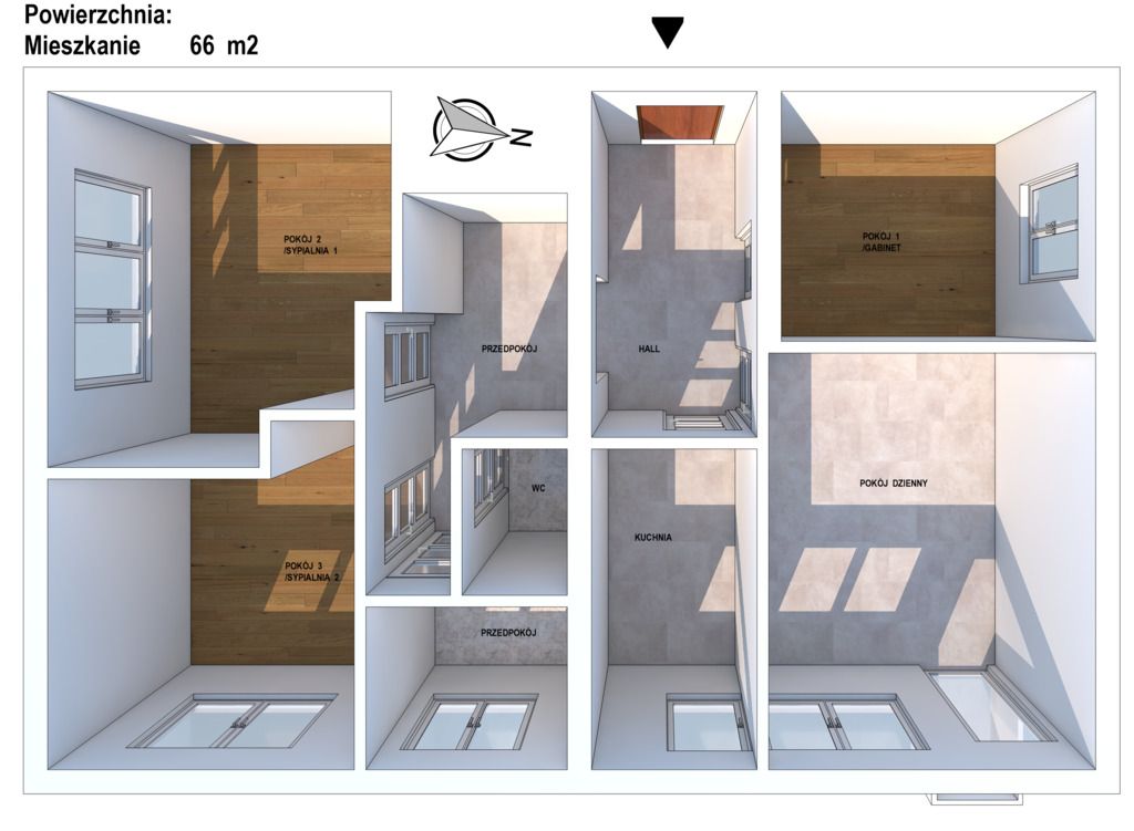 • Trójstronna ekspozycja (północ–wschód–południe), dzięki czemu mieszkanie jest przewiewne, zimą ciepłe, a latem chłodne.