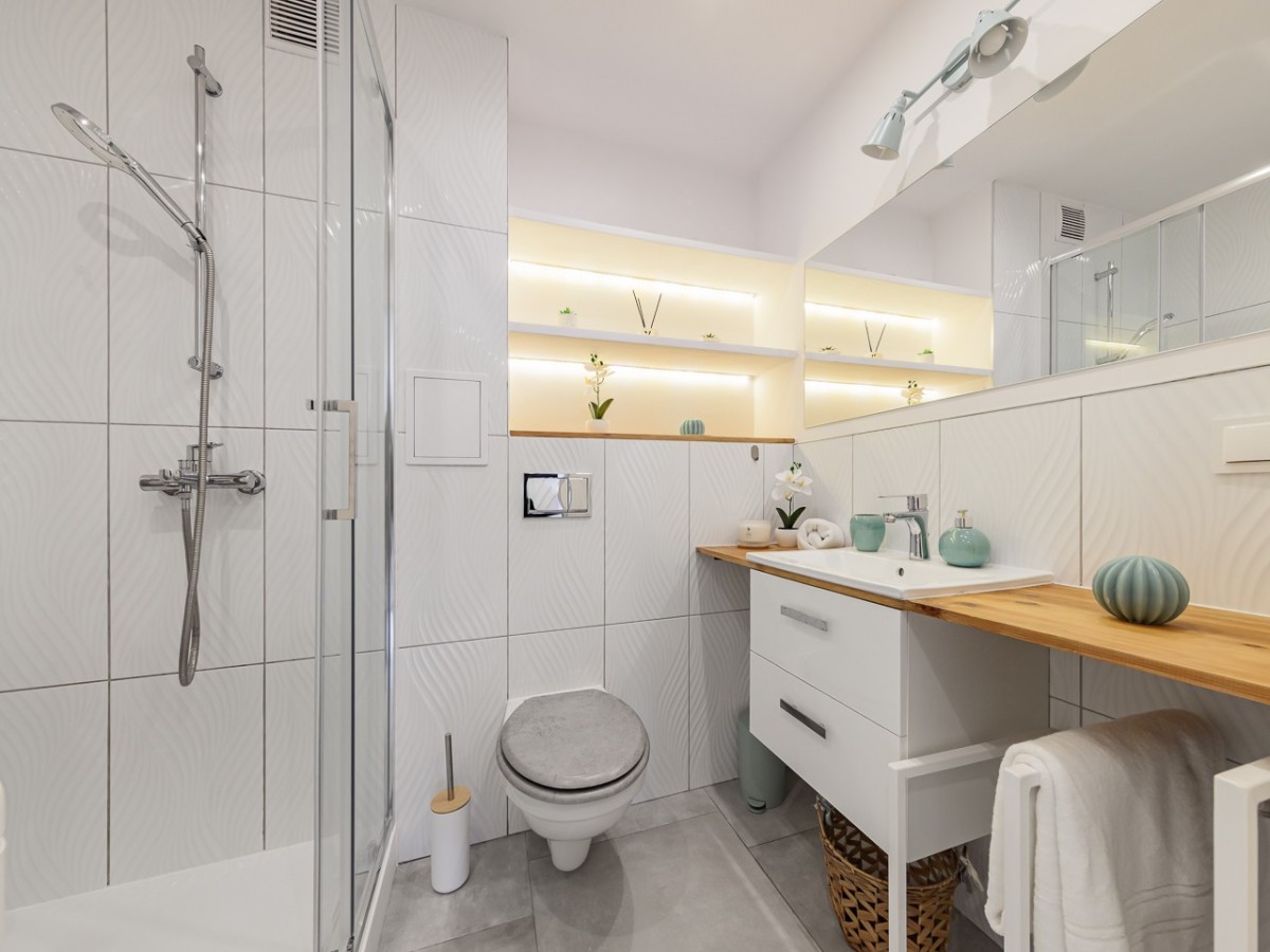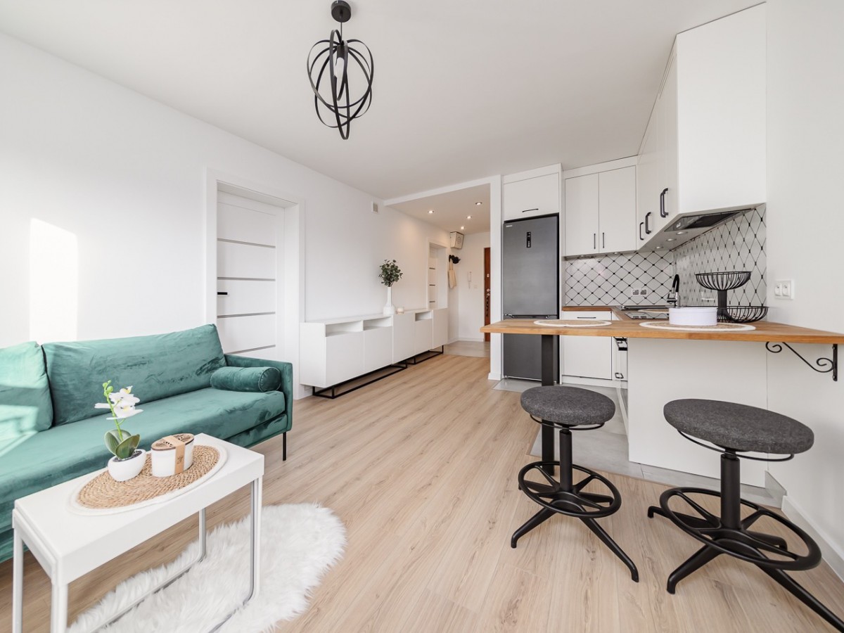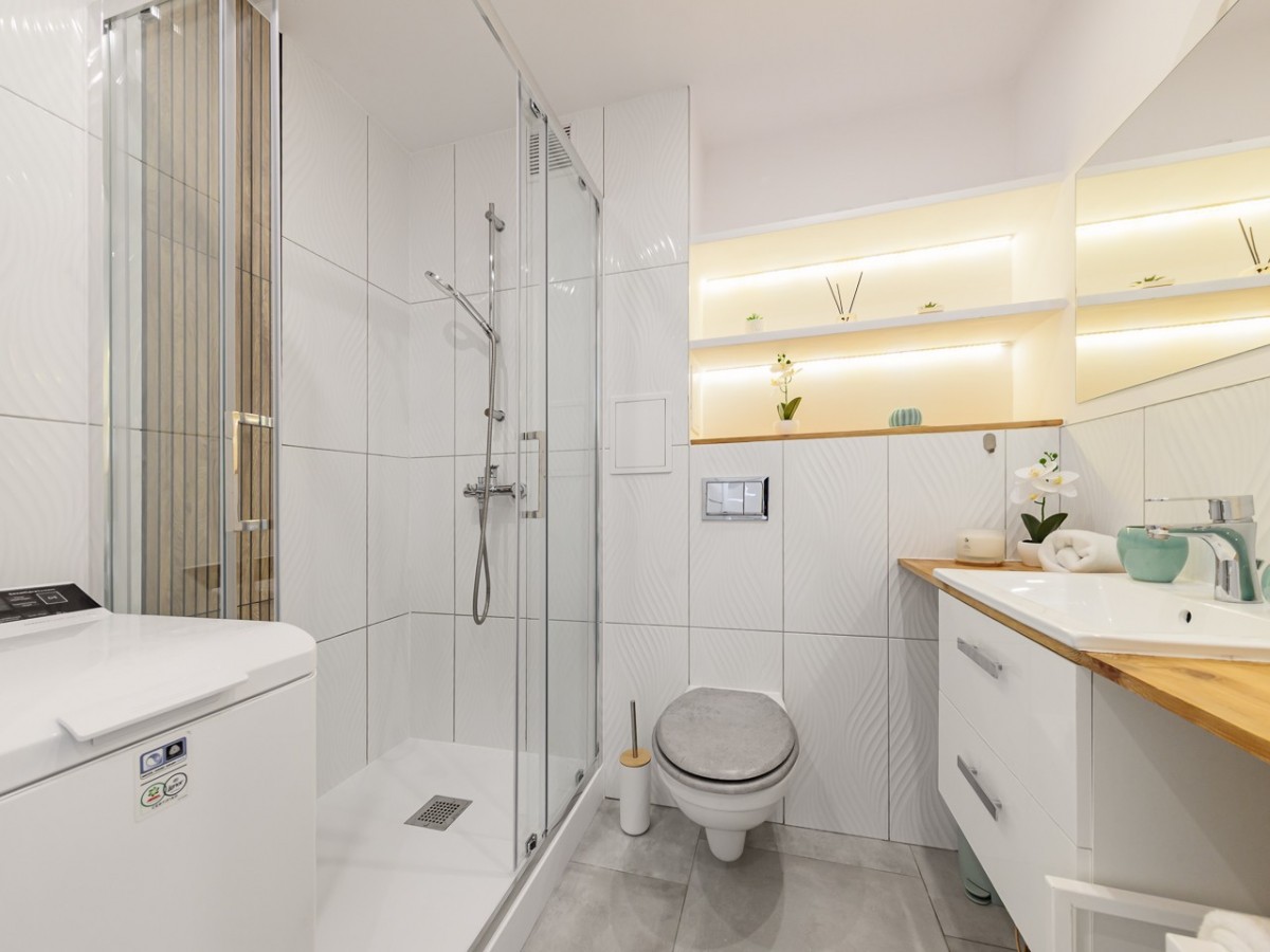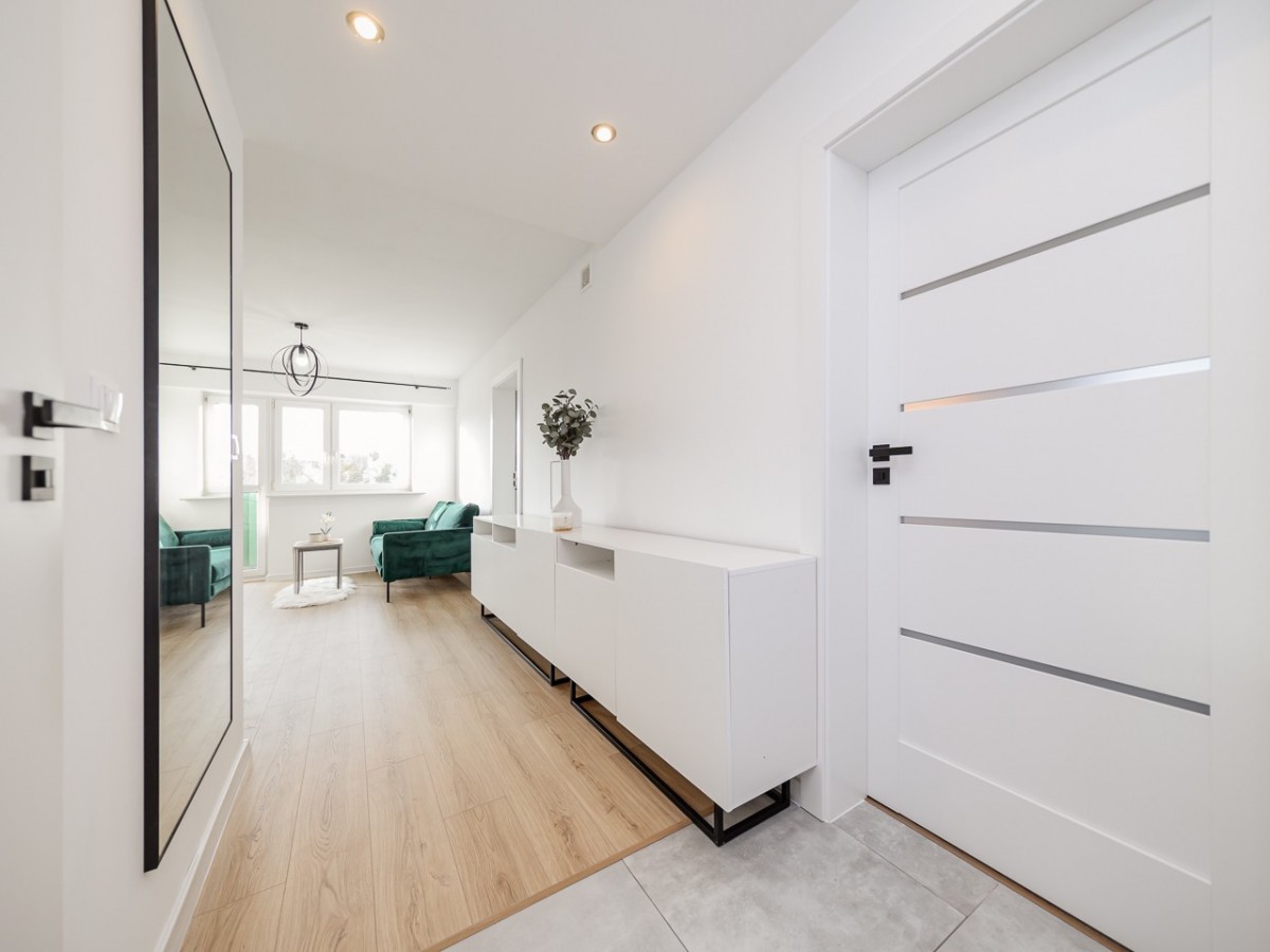 Mieszkanie jest w całości umeblowane i wyposażone w wysokiej klasy sprzęt AGD. W łazience jest nowa kabina prysznicowa.