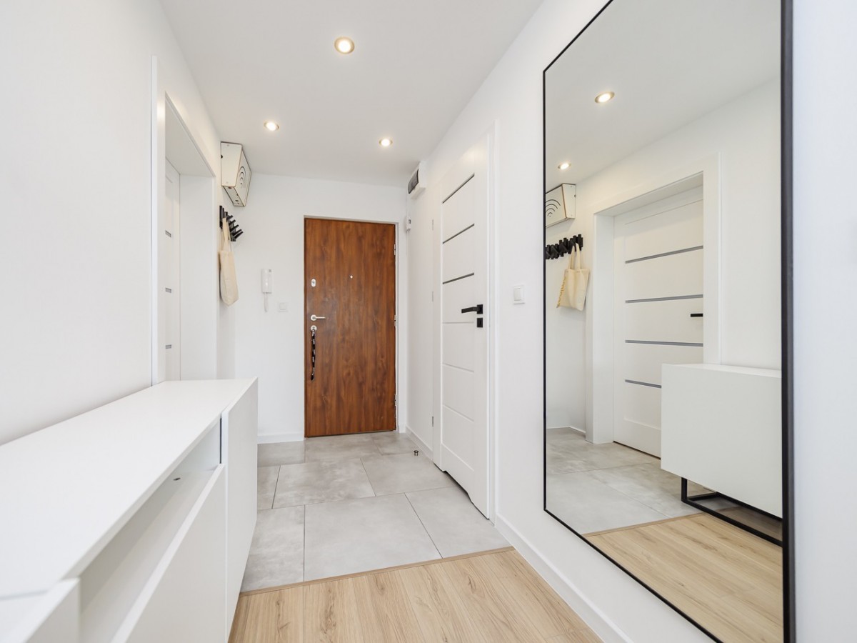 Optymalne zaaranżowanie powierzchni lokalu poprzez korzystny układ pomieszczeń oraz przemyślane usytuowanie zabudowy stałej daje poczucie większej przestrzeni oraz komfortu użytkowania. Mieszkanie jest bardzo dobrze doświetlone.
