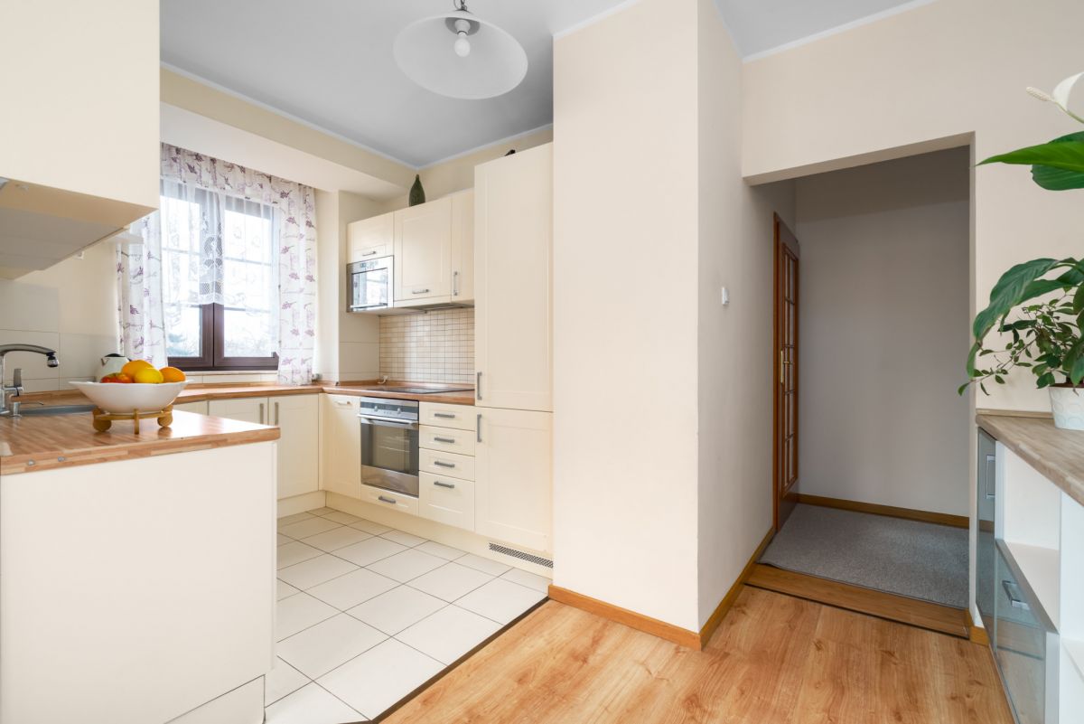 * Oddzielna kuchnia z oknem o powierzchni 10,2 m² w pełni wyposażona w zabudowie kuchennej znajduje się lodówka z zamrażarką, piekarnik, płyta indukcyjna