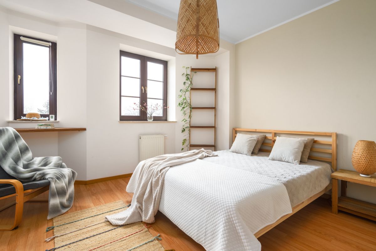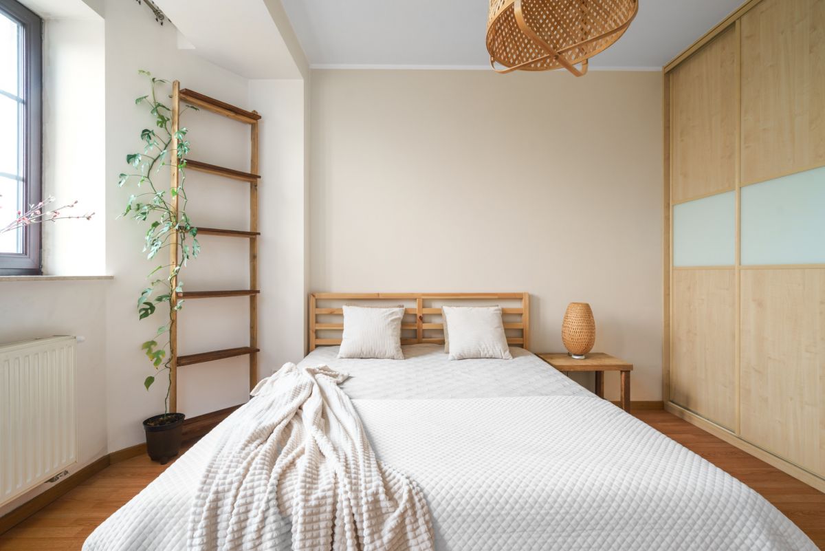 * Sypialnia o powierzchni 15,1 m² z łóżkiem i szafą w zabudowie