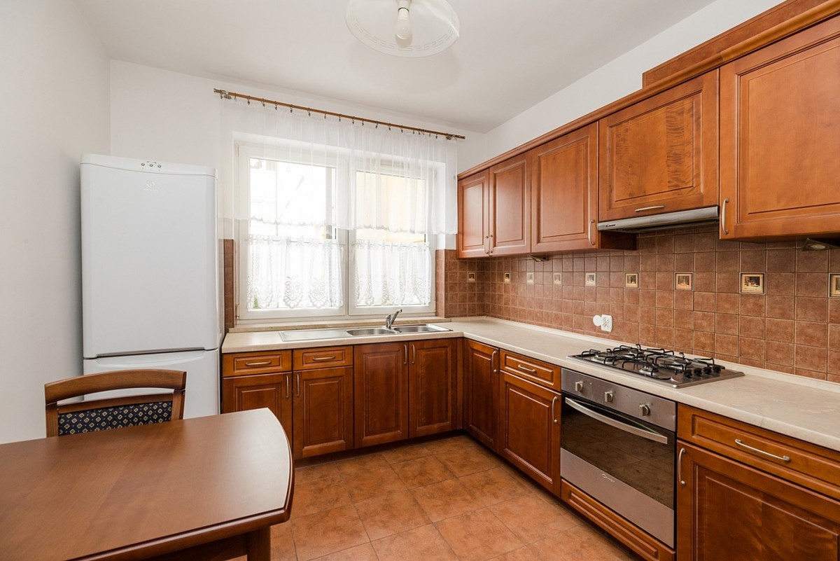 Mieszkanie wykończony w wysokim standardzie z dbałością o szczegóły. W klasycznym drewnianym stylu – parkiet na podłogach, drzwi wewnętrzne, fronty kuchenne, szafa wnękowa. Pełne wyposażenie kuchni wraz ze sprzętami pozostaje w cenie. Mieszkanie słoneczne, okna na trzy strony świata. Usytuowanie w głębi z dala od ulicy, dzięki czemu zyskujemy ciszę i spokój.