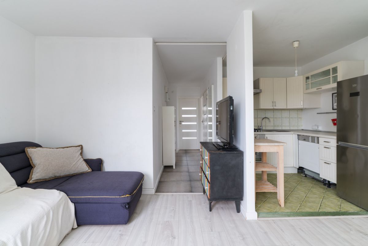 – Przestronny salon z wyjściem na balkon, połączony z półotwartą kuchnią