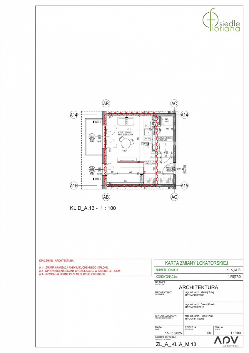W mieszkaniu zostały wprowadzone zmiany lokatorskie celem wygenerowania drugiej izby mającej za zadanie funkcji pokoju sypialnego. Wszystkie zmiany w lokalu (instalacje, ścianki) zostały wykonane bezpośrednio przez dewelopera. Mieszkanie znajduje się na 1-wszym piętrze budynku i posiada balkon o powierzchni 4,03m2. W pobliżu osiedla znajduje się dworzec PKP, przystanek autobusowy, sklepy, szkoły i przedszkola. Deweloper nie posiada tego typu mieszkań w swojej ofercie! Cena mieszkania to 385.000zł brutto. Do mieszkania należy obowiązkowo dokupić miejsce postojowe w garażu podziemnym w cenie 38.000zł brutto.