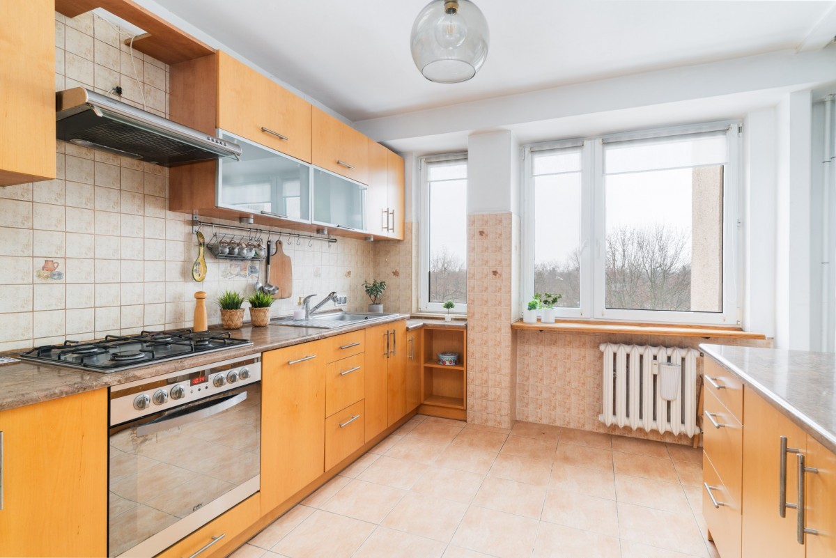 Mieszkanie jest trójstronne, dobrze doświetlone i jednocześnie ciche, oddalone od ruchliwej ulicy, w sąsiedztwie ogródków działkowych. Układ zapewnia wyraźny podział na część dzienną i prywatną. Duża loggia z wyjściem z salonu zwiększa komfort codziennego użytkowania. Lokal daje możliwość przeprowadzenia remontu lub odświeżenia zgodnie z indywidualnymi preferencjami.
