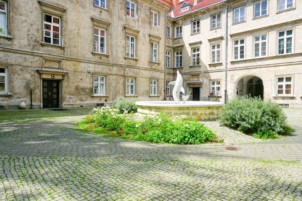 Lokalizacja w centrum Warszawy, tuż przy placu Bankowym. Okna z ekspozycją na dziedziniec z urokliwą fontanną z delfinem. Blisko stacja metra M1 Ratusz Arsenał.
