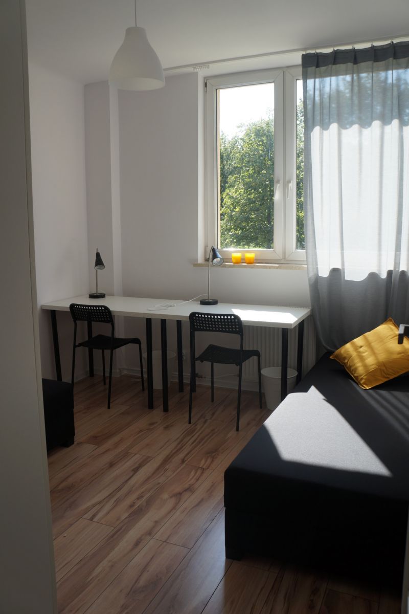 Mieszkanie składa się z pięciu pokoi, od chwili zakupu jest cały czas wynajmowane, przychód w skali miesiąca wynosi ok. 7500 PLN. Lokal przeszedł generalny remont (w tym wymiana instalacji). Pokoje wyposażone są w meble – łóżko, biurko, krzesło, duża szafa. Kuchnia wyposażona jest w AGD.