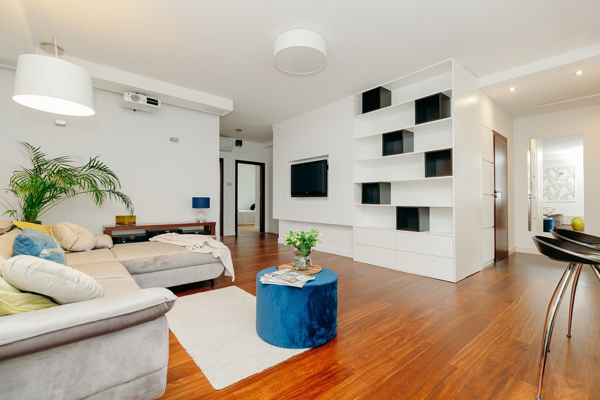Apartament został wyposażony w klimatyzację, oraz kino domowe z projektorem i ekranem.