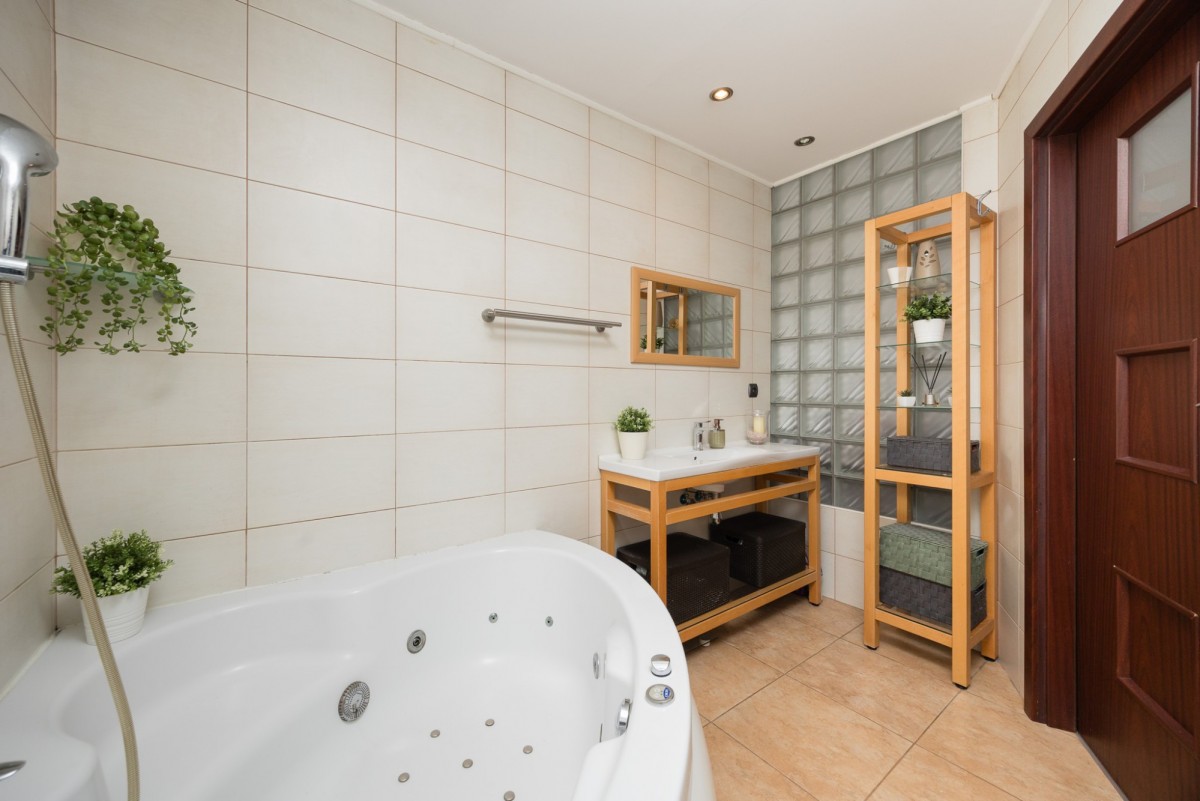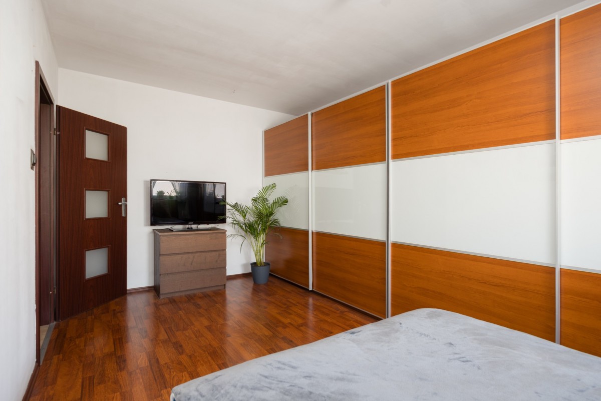 Główna sypialnia to prawdziwa oaza (19,5 m²) – jest na tyle duża, że pomieści duże łóżko, szafy wnękowe i kącik do pracy.