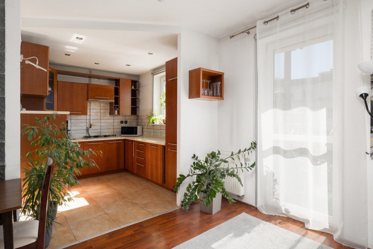 Mieszkanie ma przemyślany układ, który zapewnia prywatność i swobodę.