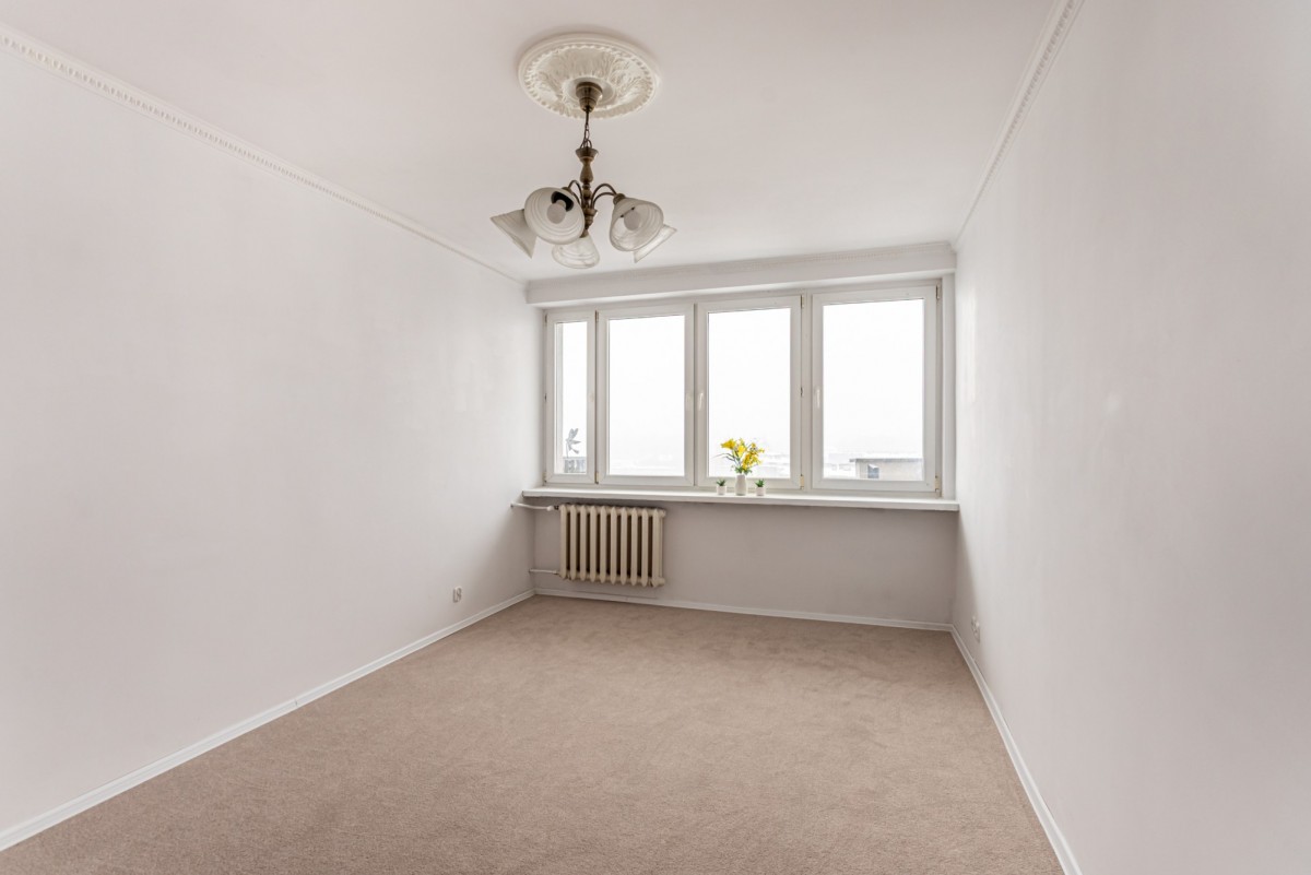 Lokal w stanie do remontu. Okna wychodzą w kierunku zachodnim, na centrum Warszawy.