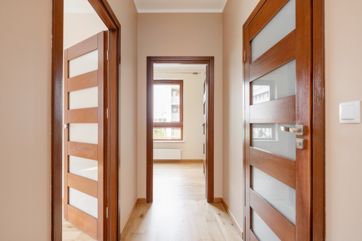 Mieszkanie ma powierzchnię 76m2 i znajduje się na trzecim piętrze. Przestrzeń dzienna składa się z salonu oraz kuchni w pełnym wyposażeniu. Z salonu mamy wyjście na balkon, z którego rozpościera się widok na zieleń. Dodatkowo na balkonie zainstalowano siatkę ochronną dla zwierząt. Przestrzeń prywatna to sypialnia master, drugi pokój, który może być zaaranżowany na sypialnię lub gabinet oraz łazienka główna. Ponad to w mieszkaniu znajduje się garderoba oraz toaleta dla gości.