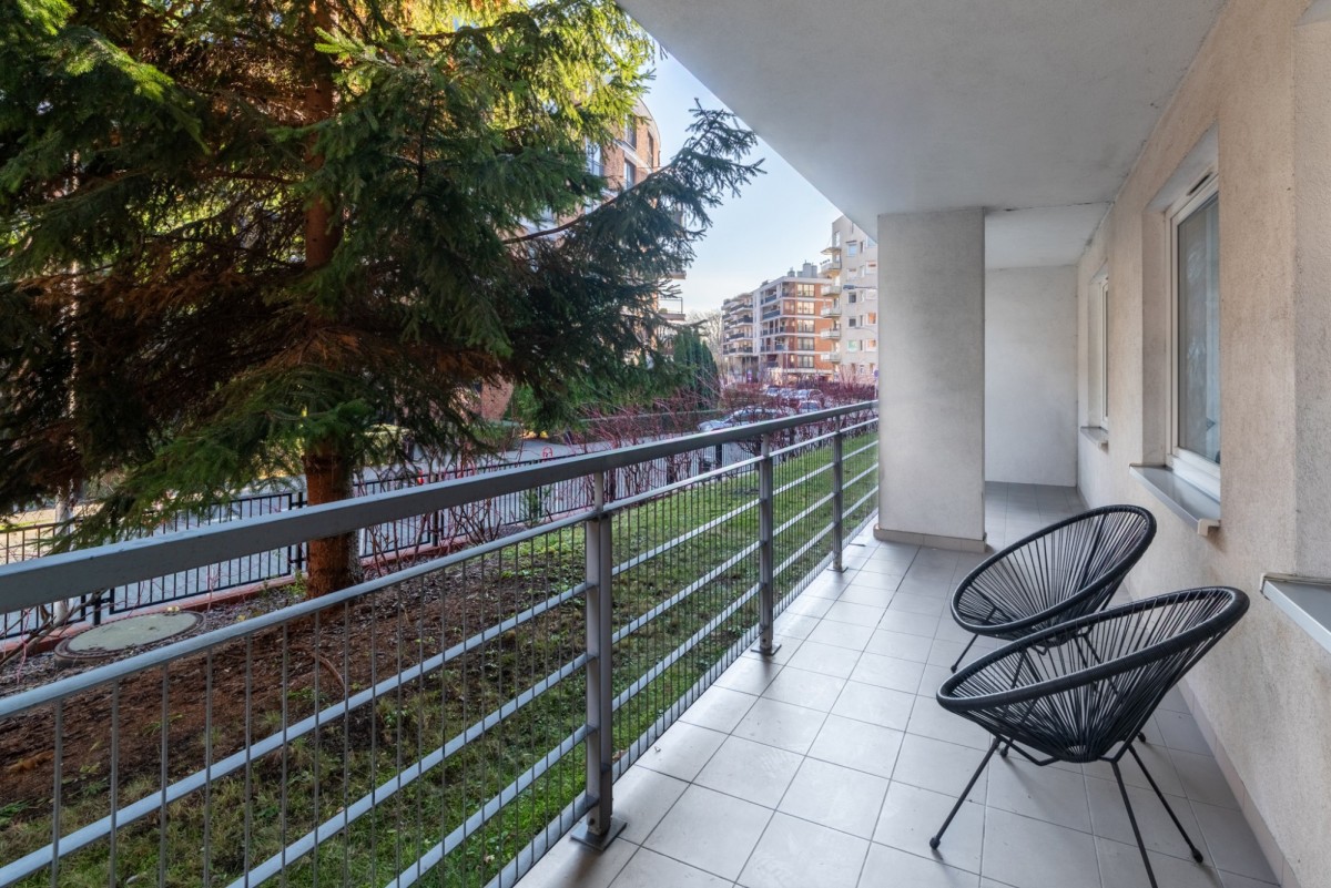 Mieszkanie ma powierzchnię 52,26 m² i znajduje się na parterze 5-kondygnacyjnego budynku. Jest bardzo zadbane i funkcjonalnie wykończone. Z salonu prowadzi wyjście na taras otoczony zadbaną zielenią — trawnikiem, krzewami i wysokimi drzewami, które zapewniają poczucie prywatności i naturalnego, kameralnego otoczenia. To przestrzeń, która wiosną i latem dodatkowo umili wieczory.