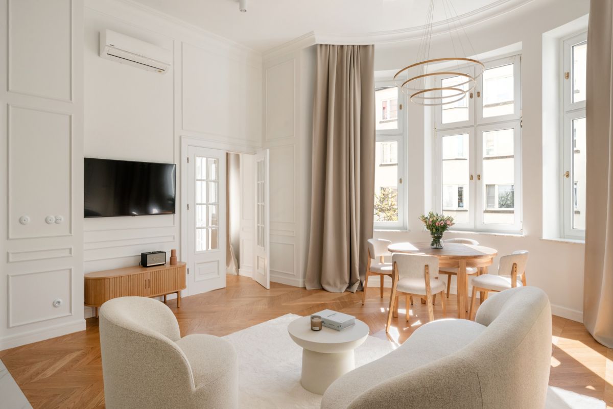 Prezentujemy Państwu przepiękne, zupełnie nowe mieszkanie w przedwojennej, zabytkowej kamienicy, położonej w jednej z najbardziej pożądanych części warszawskiego Śródmieścia.