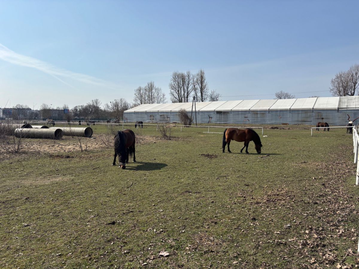 - salonu z dużym balkonem z bezposrednim widokiem na stadninę koni oraz panoramę Warszawy