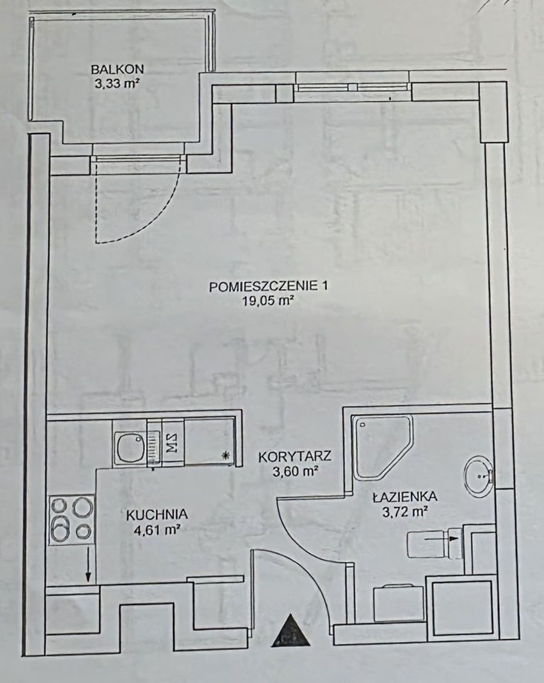 1 pokój – 19,05 m.kw