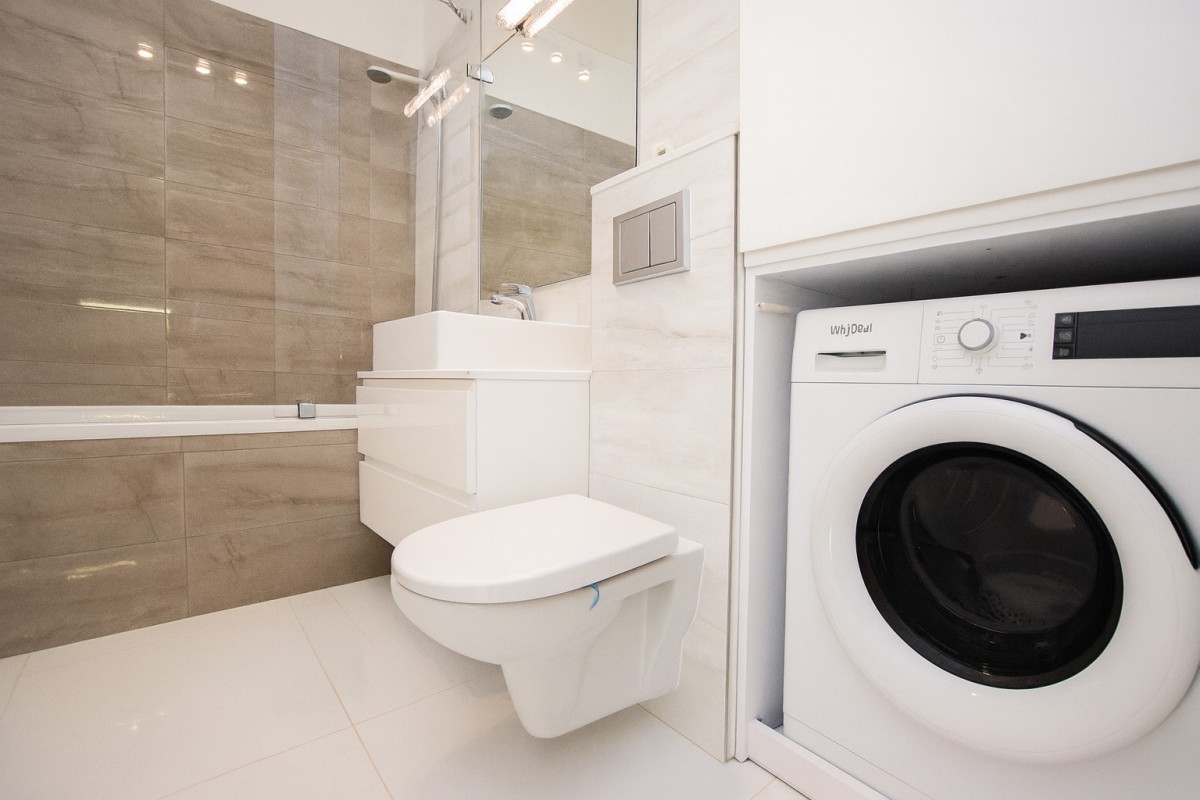 • Łazienka z prysznicem i pralką,
