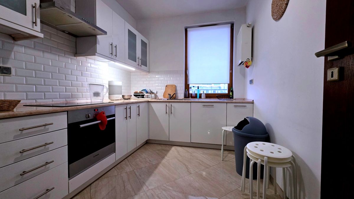 – oddzielna kuchnia z oknem, w pełni wyposażona w sprzęt AGD (lodówka, piekarnik, płyta elektryczna, zmywarka, zabudowa szafkowa),