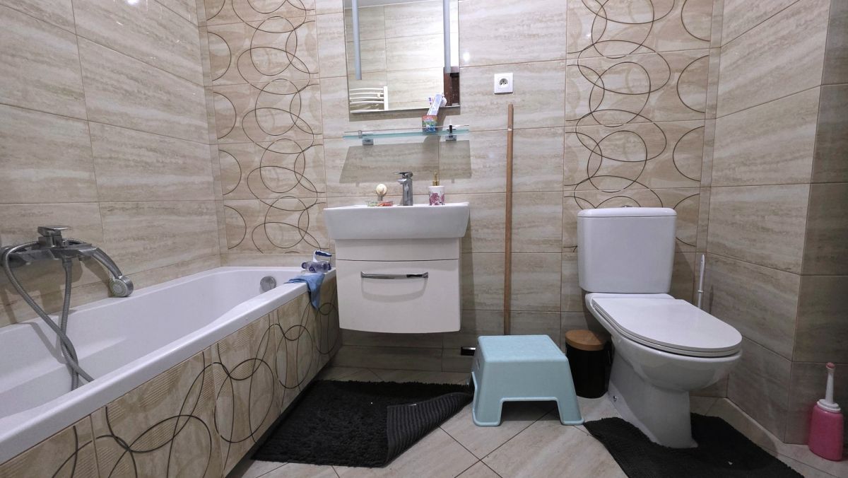 – łazienka wyposażona w wannę, toaletę, kabinę prysznicową, umywalkę,