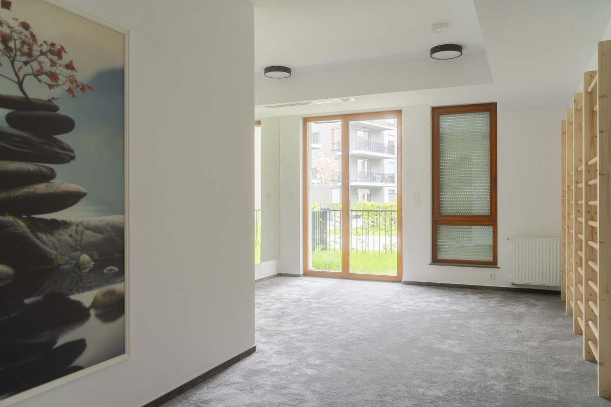 dla mieszkańców na osiedlu jest wydzielona siłownia, sauna, pokój jogi, pokój malucha, recepcja,