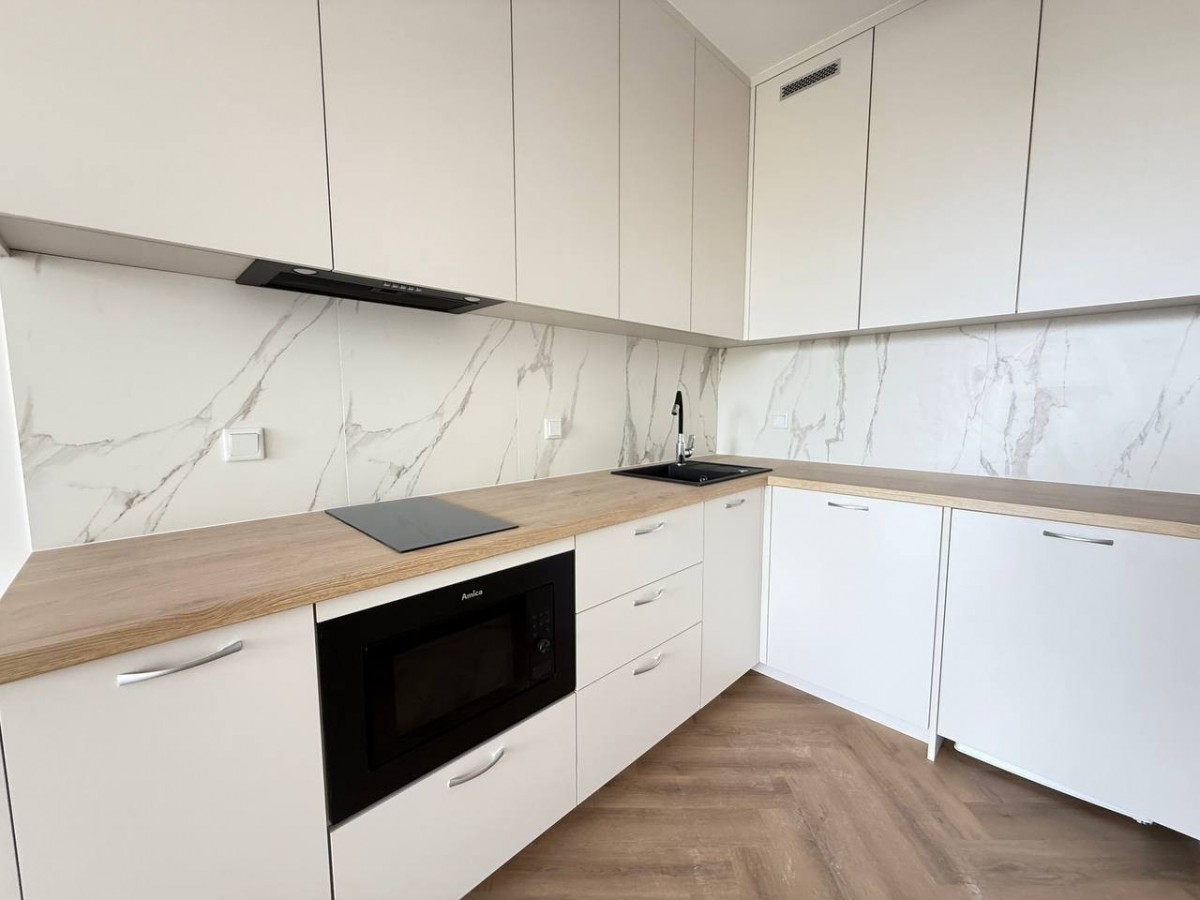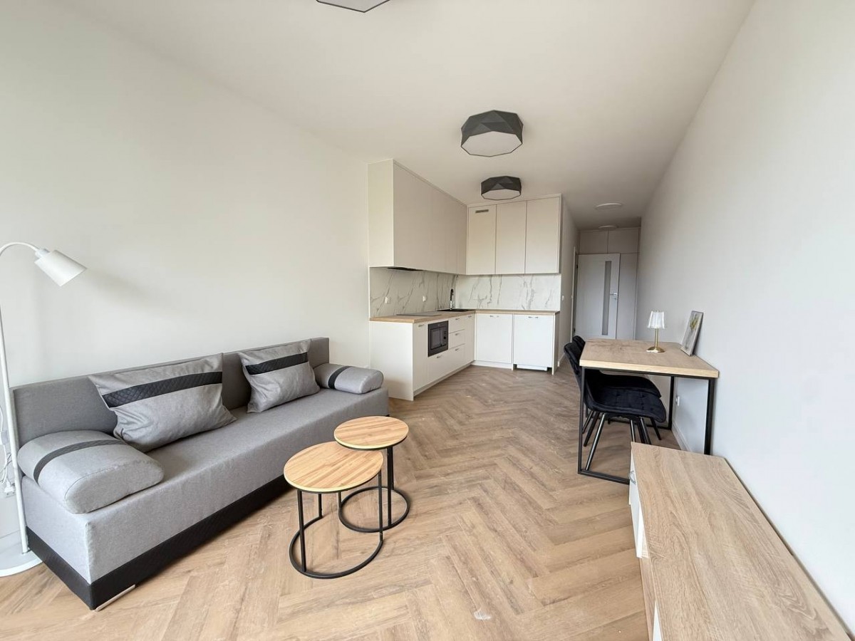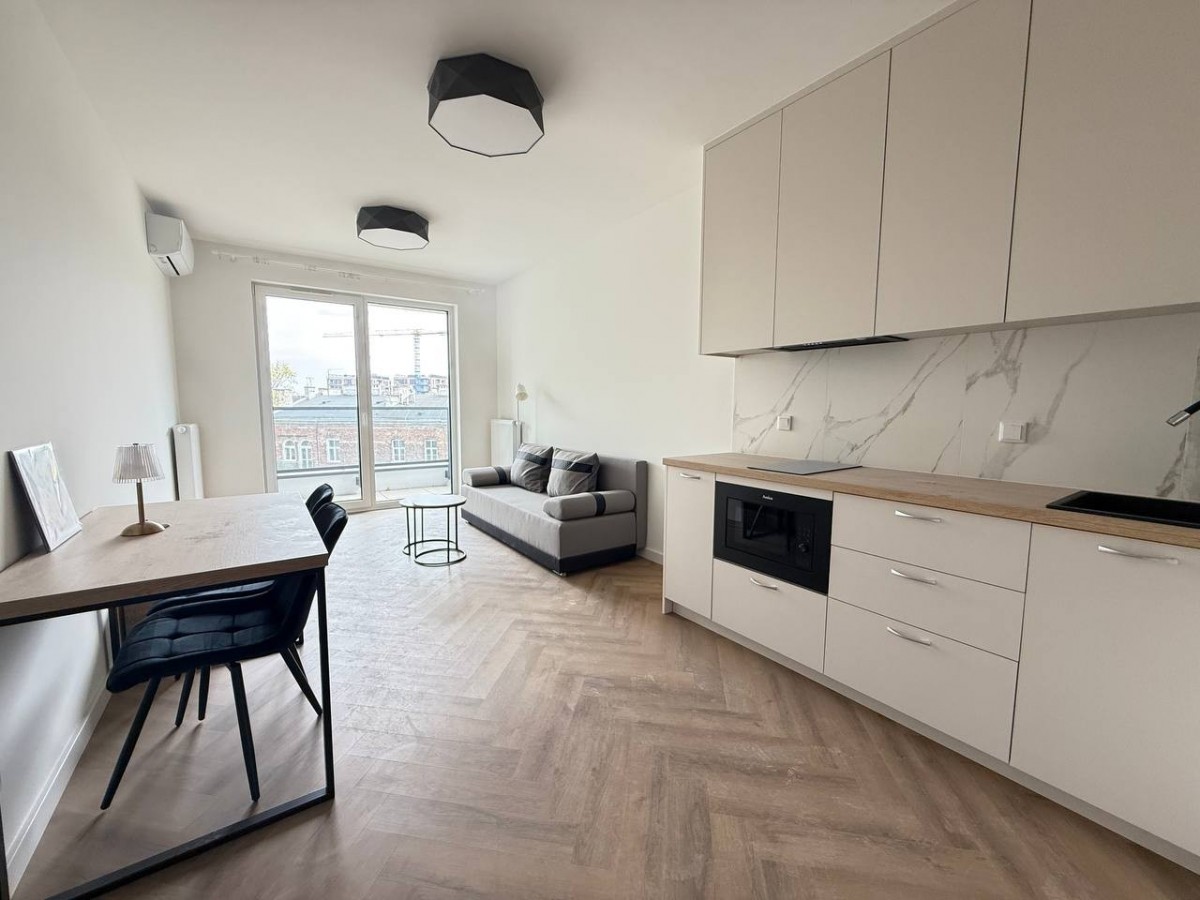 Duży pokój dzienny z aneksem kuchennym daje wiele możliwości aranżacji i pozwala wygodnie wydzielić strefę wypoczynkową, jadalnianą oraz roboczą. Mieszkanie jest jasne, ustawne, dobrze doświetlone i wyposażone w klimatyzację. Dzięki nowemu wykończeniu lokal nie wymaga dodatkowych nakładów finansowych.