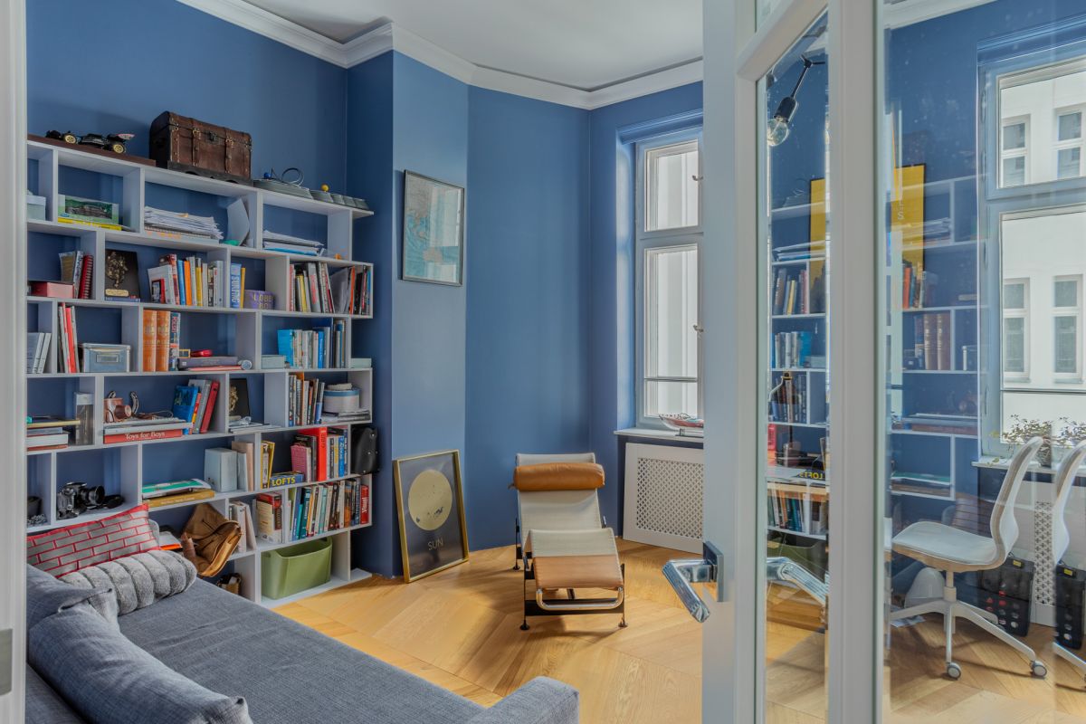 * druga sypialnia / gabinet – obecnie zaaranżowana jako gabinet, ale może pełnić funkcję dodatkowej sypialni,
