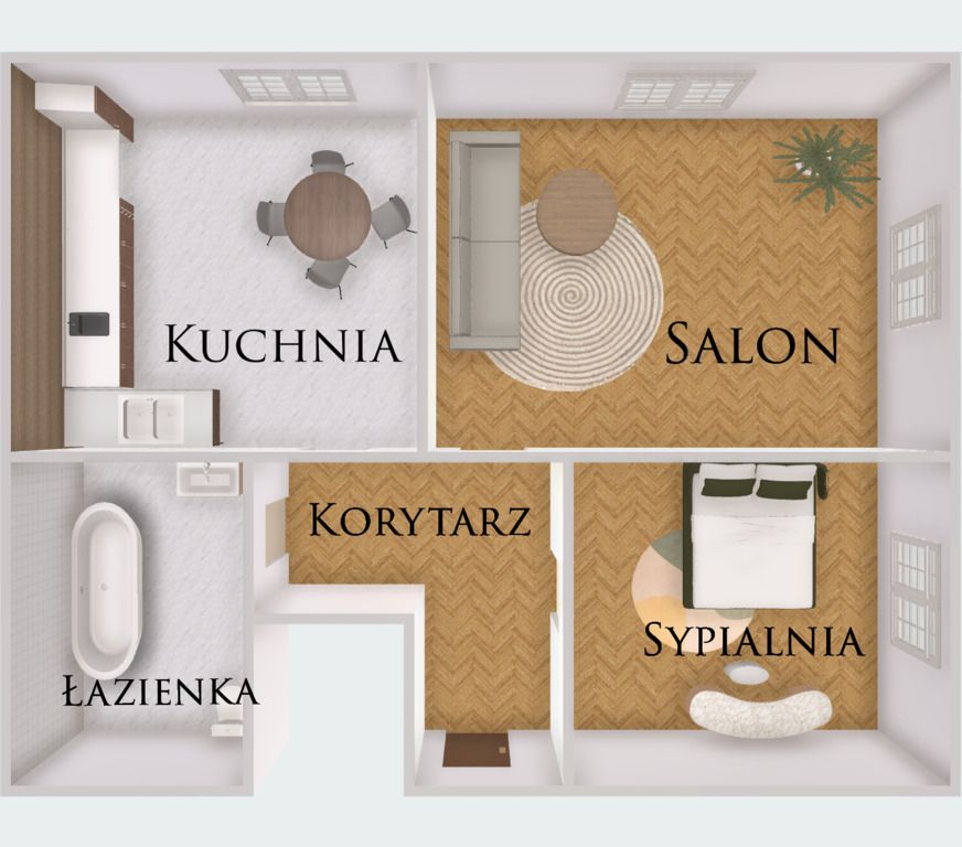 - Pod panelami czeka perełka – oryginalny parkiet dębowy ułożony w jodełkę, w świetnym stanie, gotowy, by przywrócić mu dawny blask.