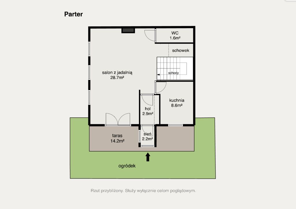 -dodatkowo: przedsionek (ok. 2,9 m²), sień (ok. 2,2 m²).