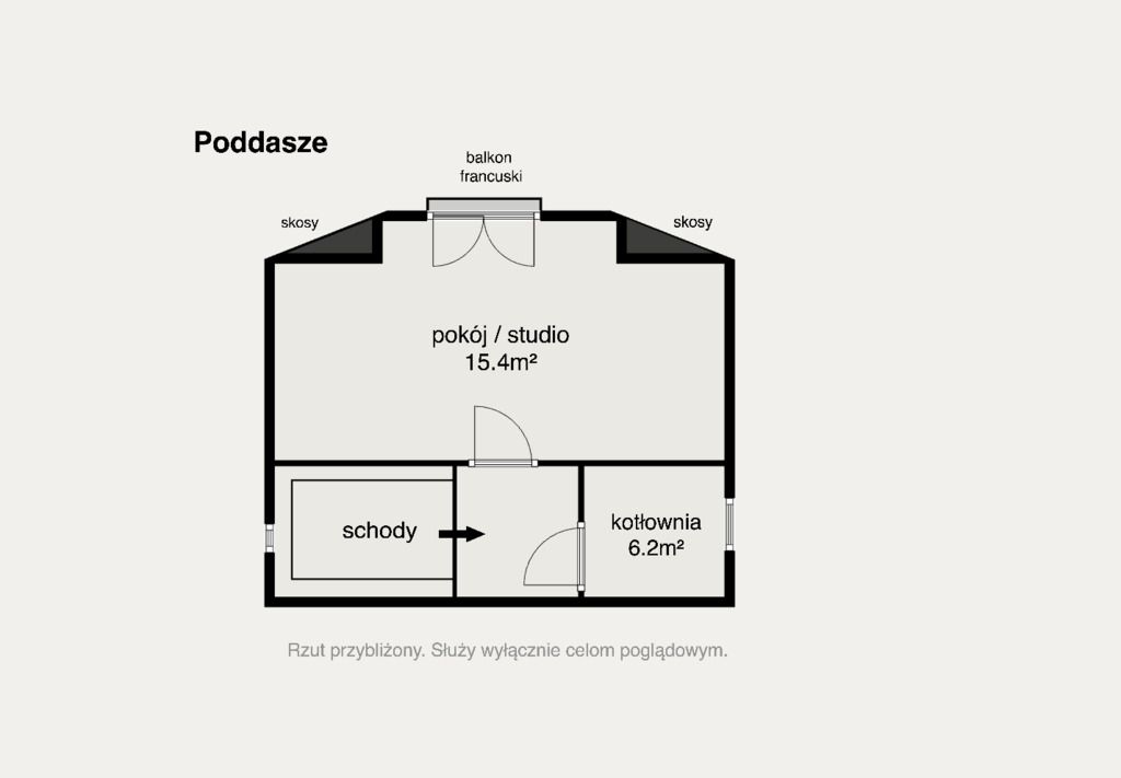 -duży otwarty pokój (studio) (ok. 15,4 m²) – idealny na sypialnię, biuro, strefę relaksu,
