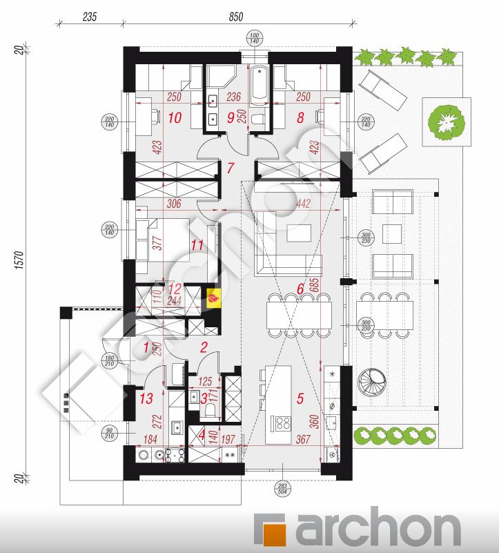 • minimalna powierzchnia biologicznie czynna – 60% powierzchni działki,