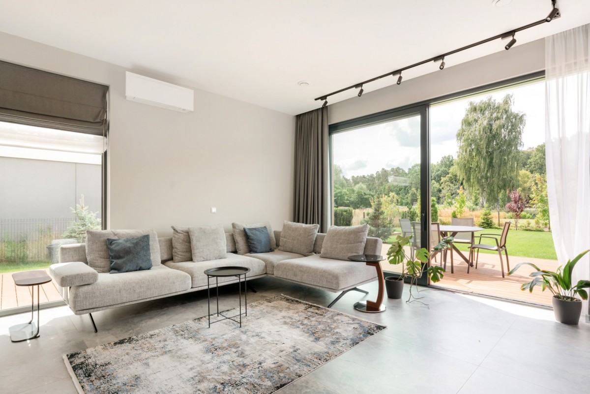 Komfort codziennego życia zapewnia klimatyzacja Daikin w każdym pomieszczeniu, ogrzewanie podłogowe na całym parterze oraz nowoczesny system nawadniania ogrodu. Każda sypialnia ma dostęp do łazienki i garderoby, co zapewnia prywatność i wygodę wszystkim domownikom. Na najwyższym piętrze znajduje się pokój z dwoma tarasami – idealne miejsce na reprezentacyjne biuro, pokój gościnny lub przestrzeń dla nastolatka.