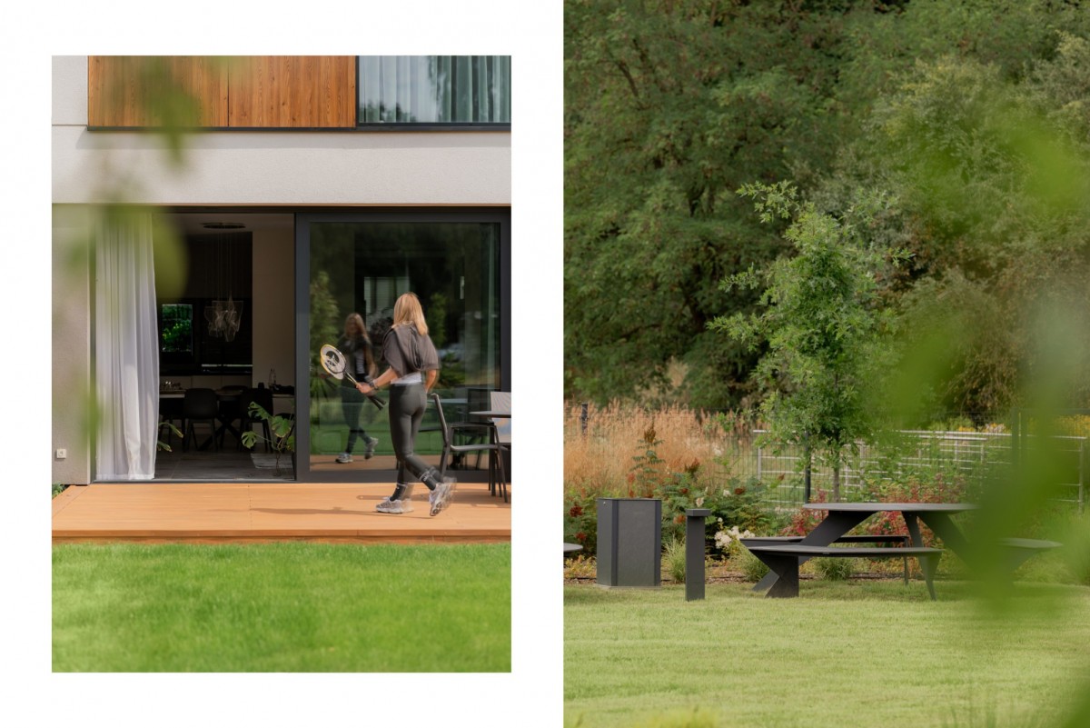 Ta nieruchomość to coś więcej niż adres – to styl życia. Krok od domu zaczyna się las – z malowniczymi ścieżkami rowerowymi i spacerowymi. Na osiedlu basen i sauna, idealne na chwile odpoczynku. W ogrodzie można rozłożyć matę do jogi, rozegrać mecz badmintona albo ułożyć się wygodnie na leżaku i patrzeć na otaczającą zieleń. To miejsce, w którym przez cały rok można poczuć się jak na wakacjach.