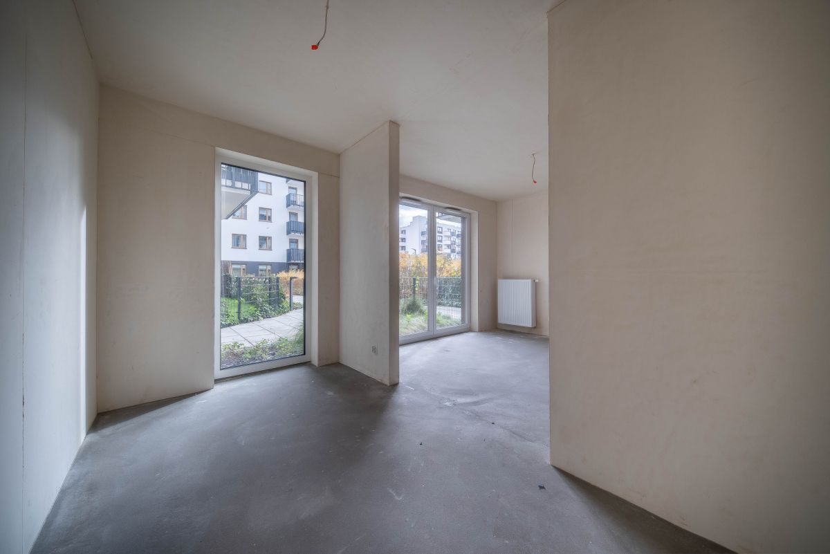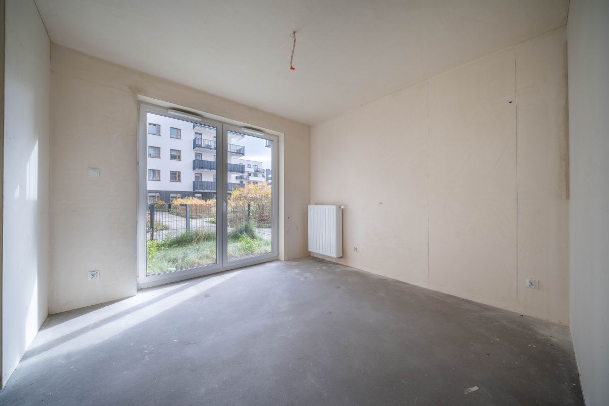 • przestronna strefa dzienna – salon z aneksem kuchennym i wyjściem do dużego ogródka o powierzchni blisko 40 m²,